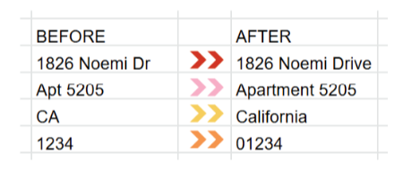 - Spell out and standardize US State Abbreviations and Canadian Province Abbreviations (ie: CA > California)
